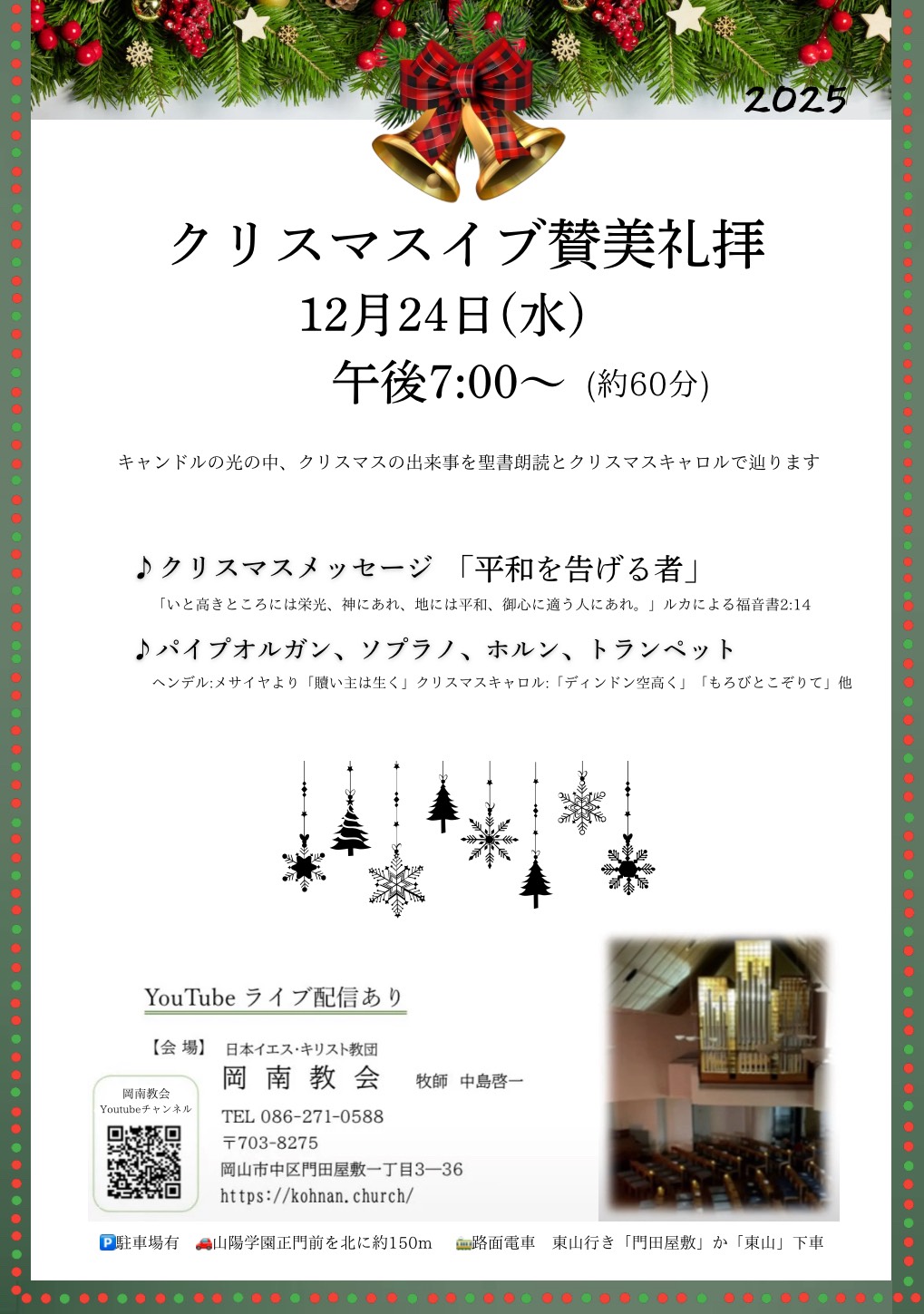 2025 12 07 岡南教会 待降節(アドベント)第二主日...